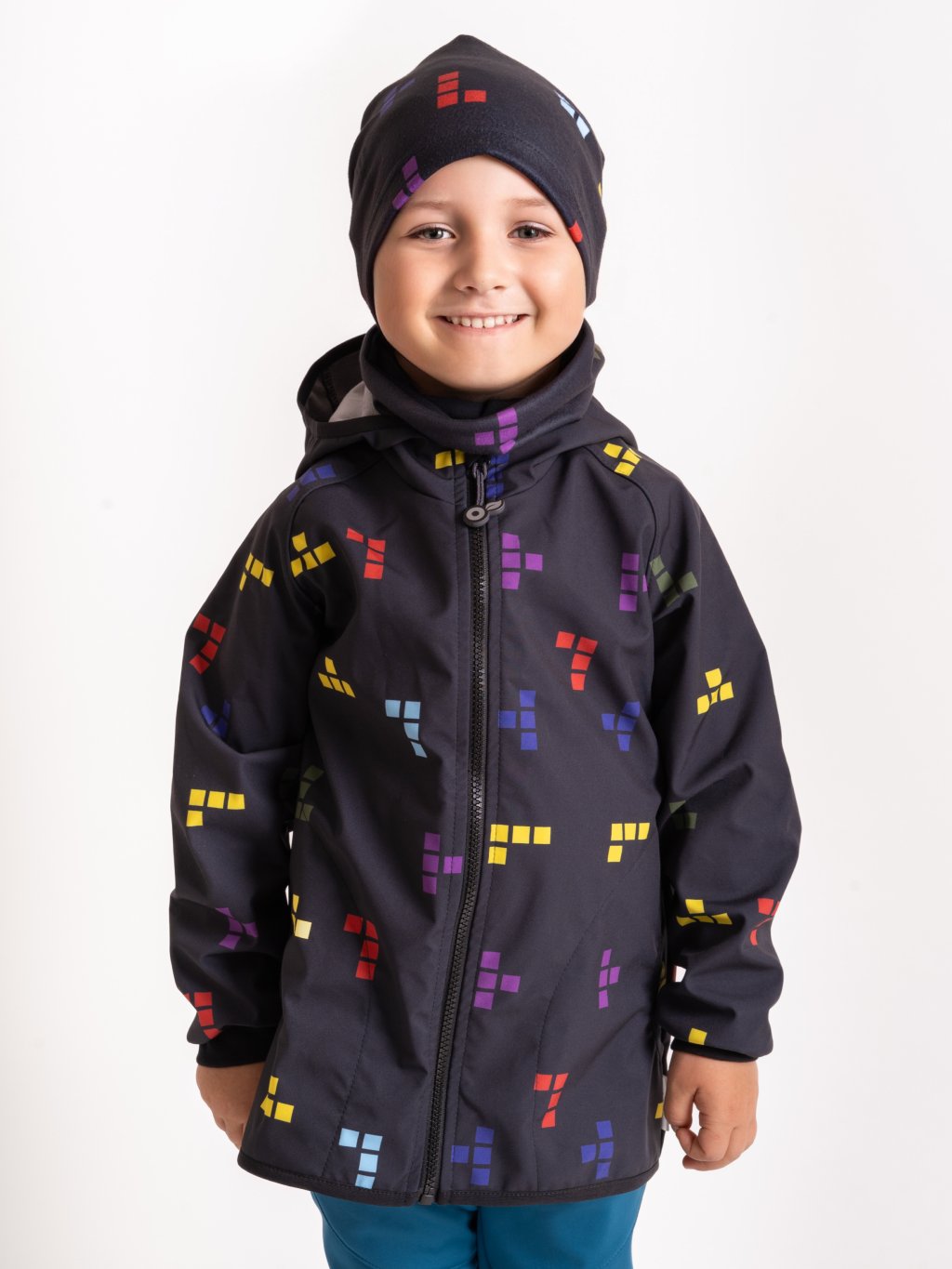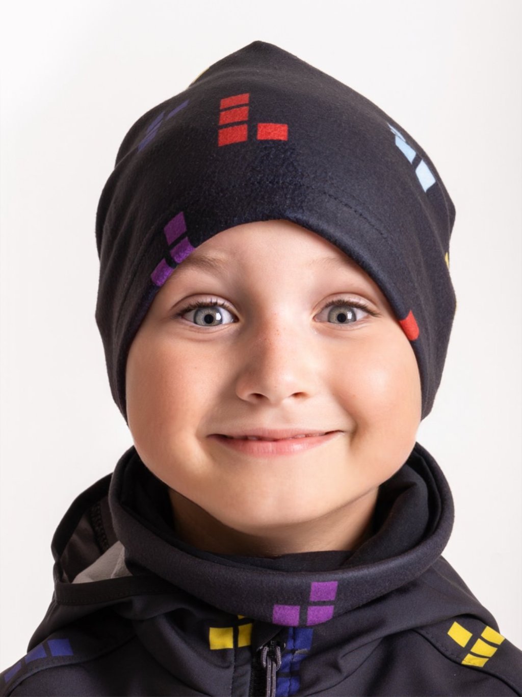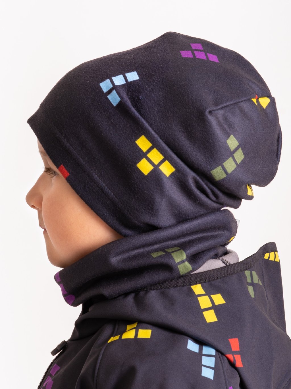 Fleece-Halswärmer für Kinder Basic, Schwarz, Würfel