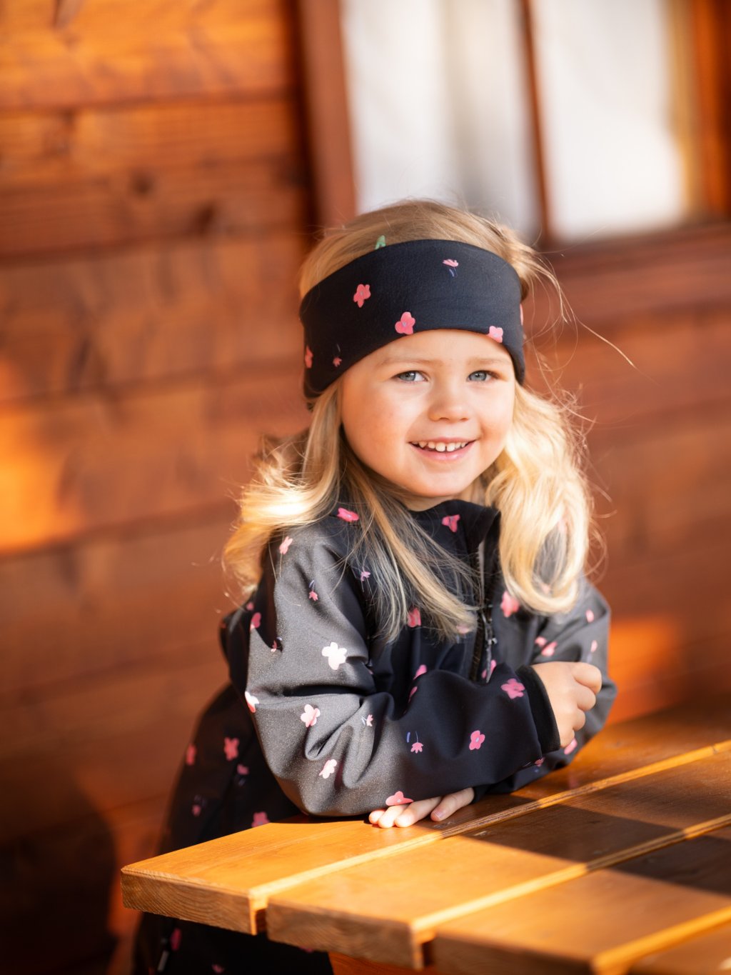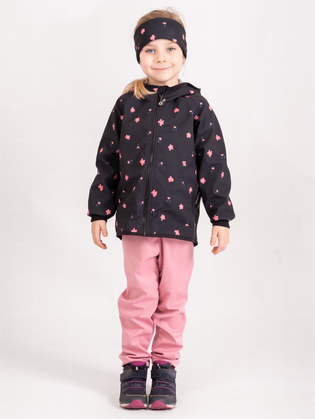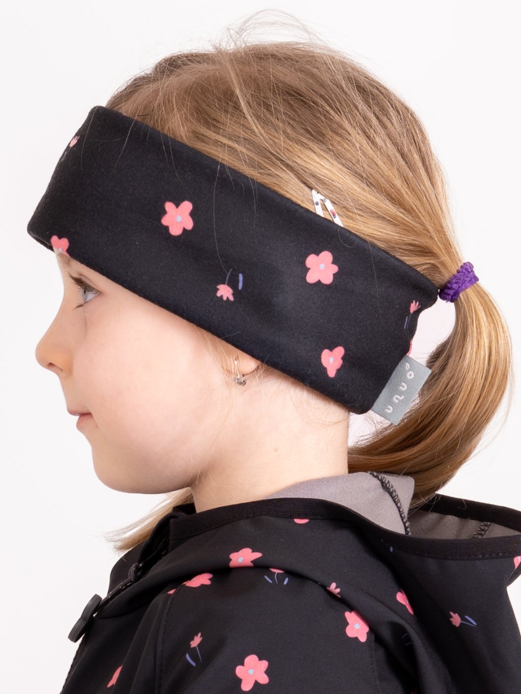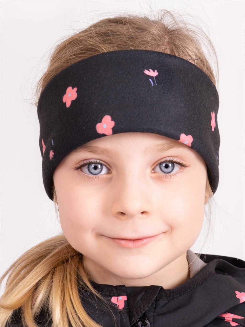 Fleece-Stirnband für Kinder Elise, Schwarz, Blumen
