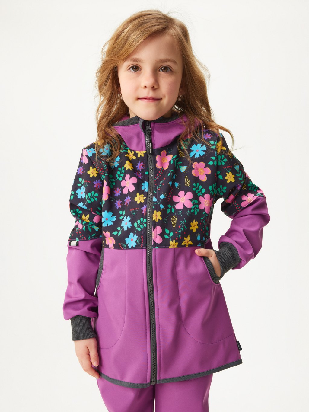 Softshell-Mantel mit Fleece für Mädchen Street, Brombeere, Blumen