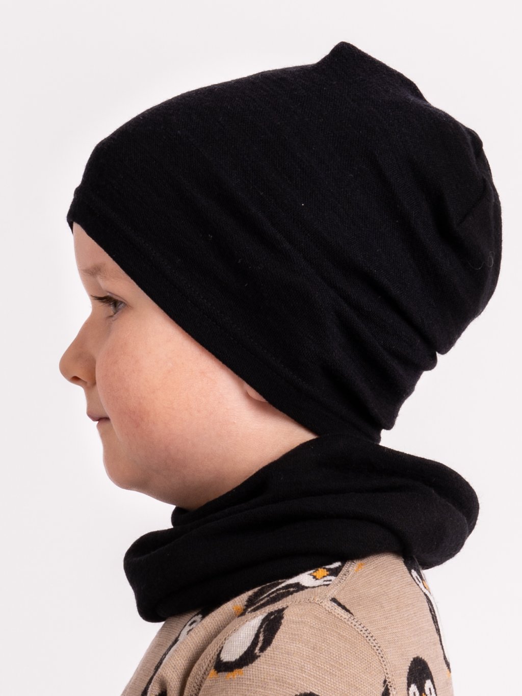Merino-Halswärmer für Kinder Basic, Schwarz