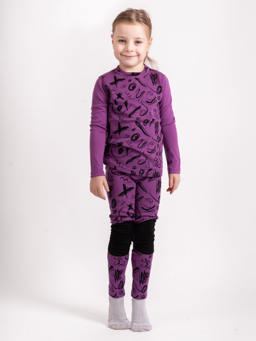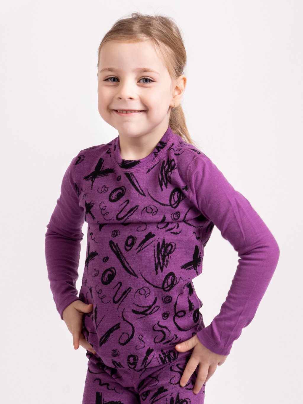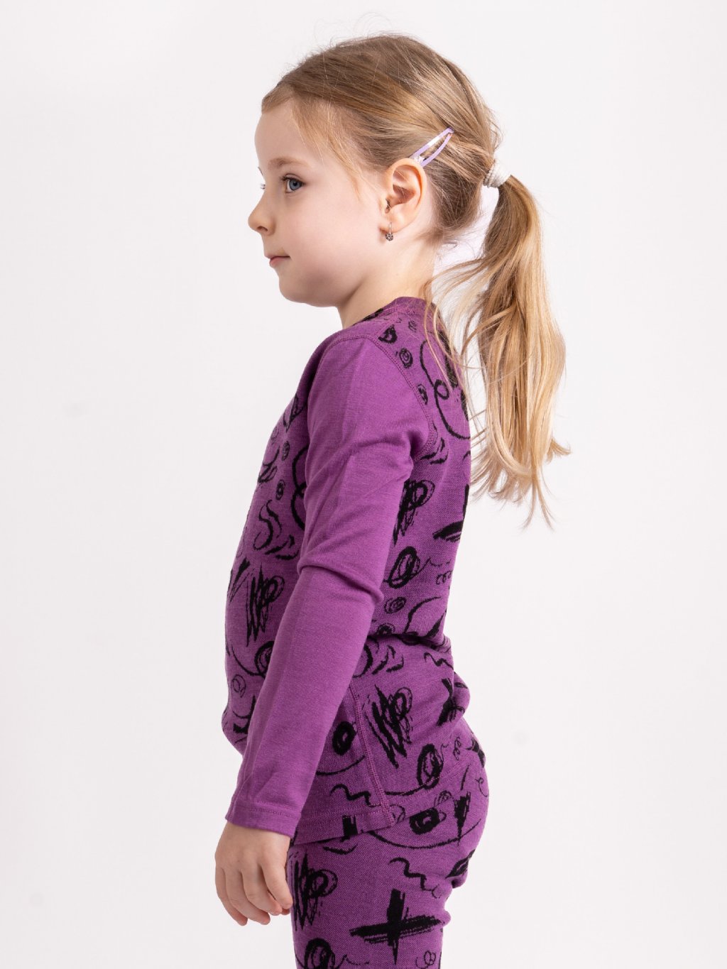 Merino-Langarmshirt für Kinder Nature, Brombeere, Zeichnung