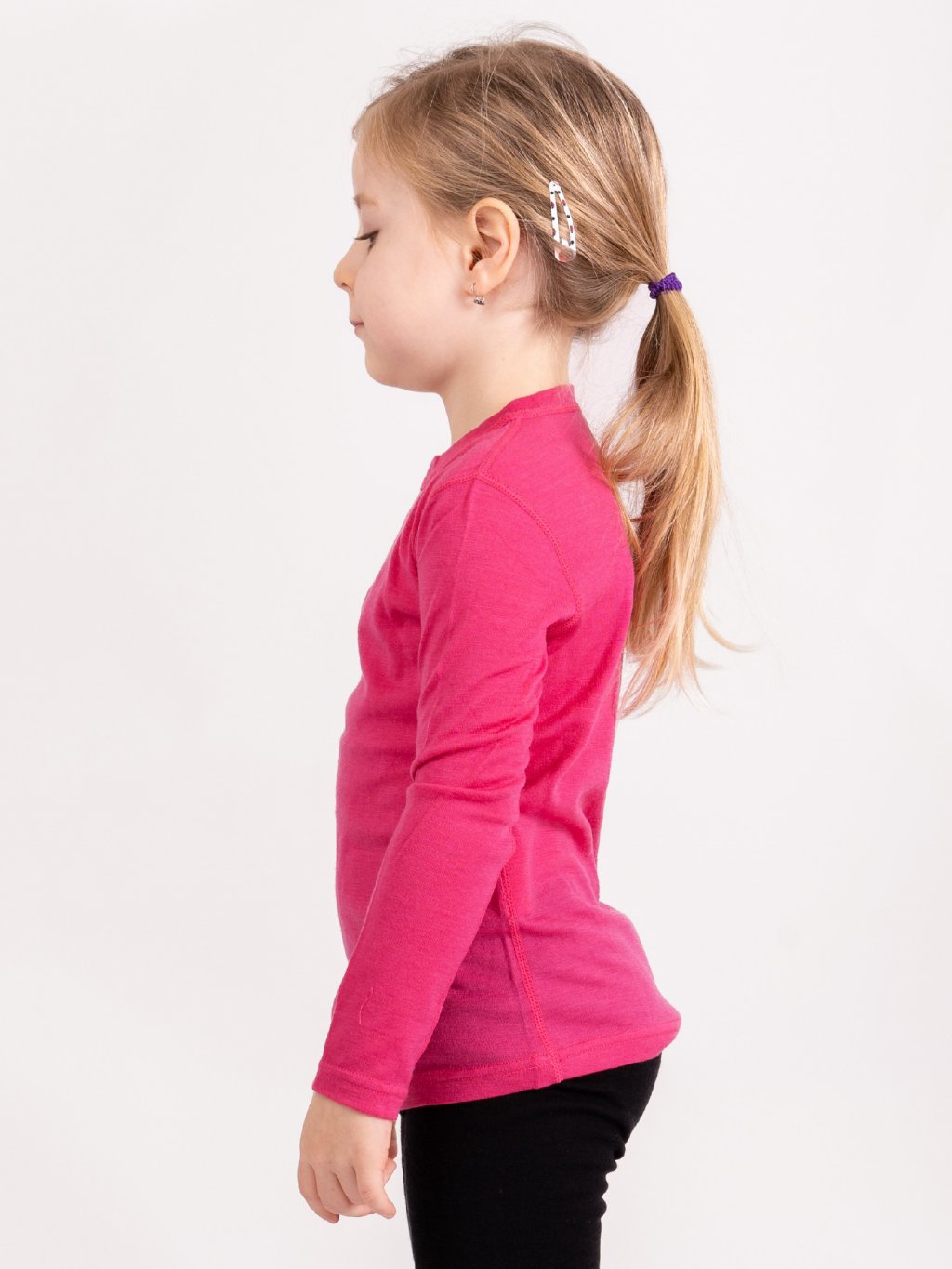 Merino-Langarmshirt für Kinder Nature, Fuchsia