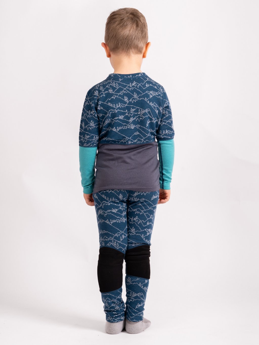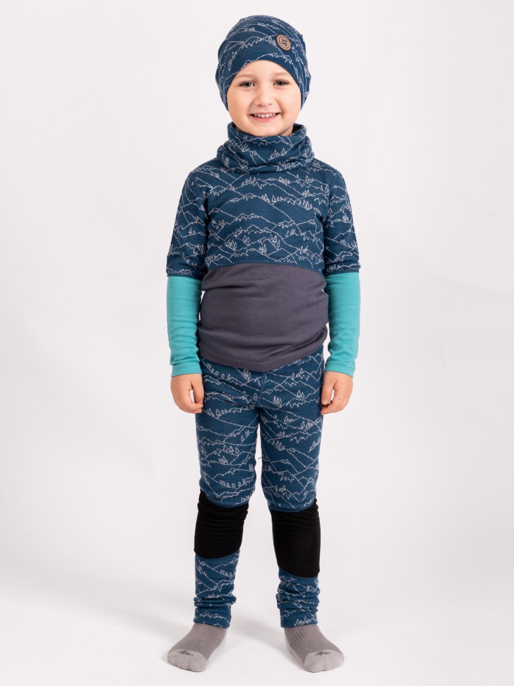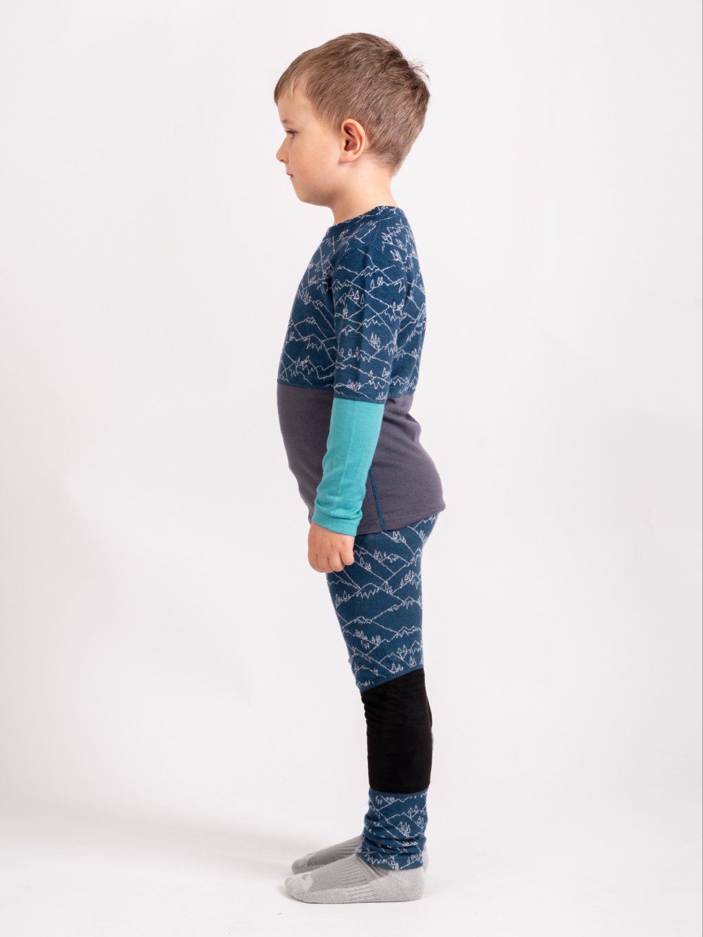 Merino-Leggings für Kinder Nature, Kobalt, Berge Junge