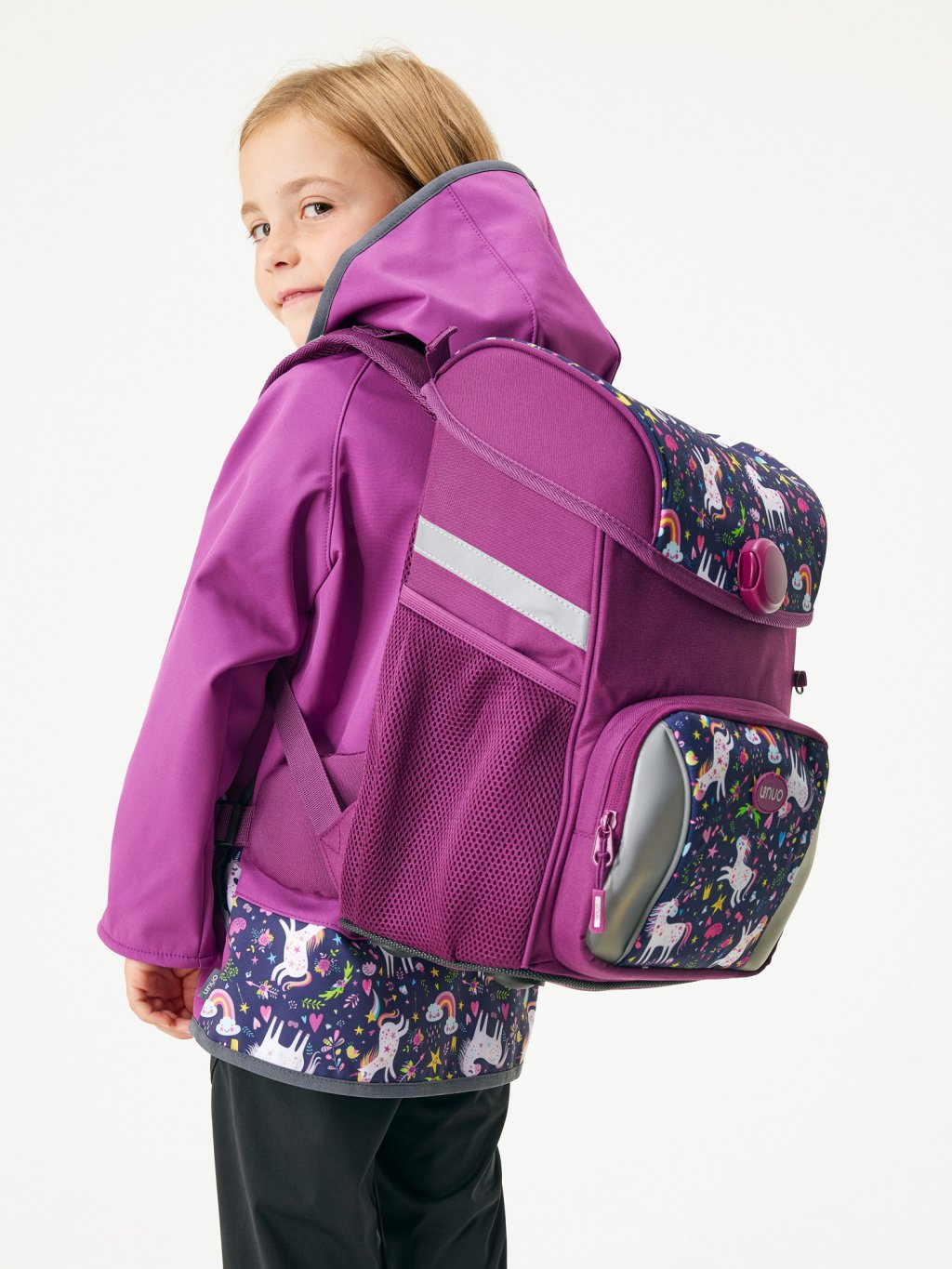 Der Schulrucksack mit seinem verspielten Design ist der perfekte Begleiter für den täglichen Schulweg. Dank seiner durchdachten Innenaufteilung, dem gepolsterten Rücken und den reflektierenden Elementen an allen Seiten ist er nicht nur bequem, sondern auch sicher. Das Gewicht des Rucksacks liegt bei 1 kg und das Volumen bei 20 Litern.