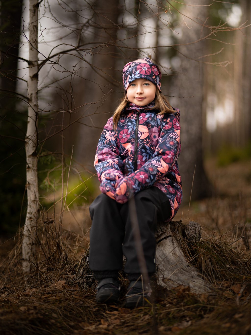 Softshell-Hose mit Fleece für Kinder Plus, Schwarz, Magische Blumen