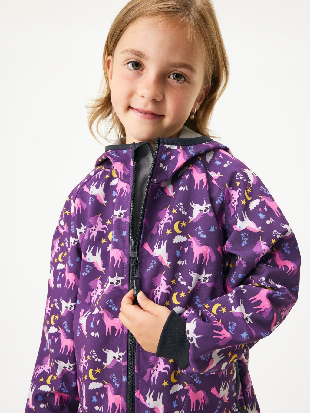 Softshell-Jacke mit Fleece für Kinder Basic, Einhörner