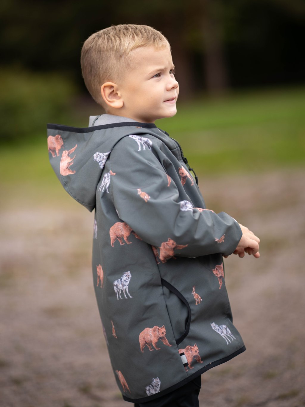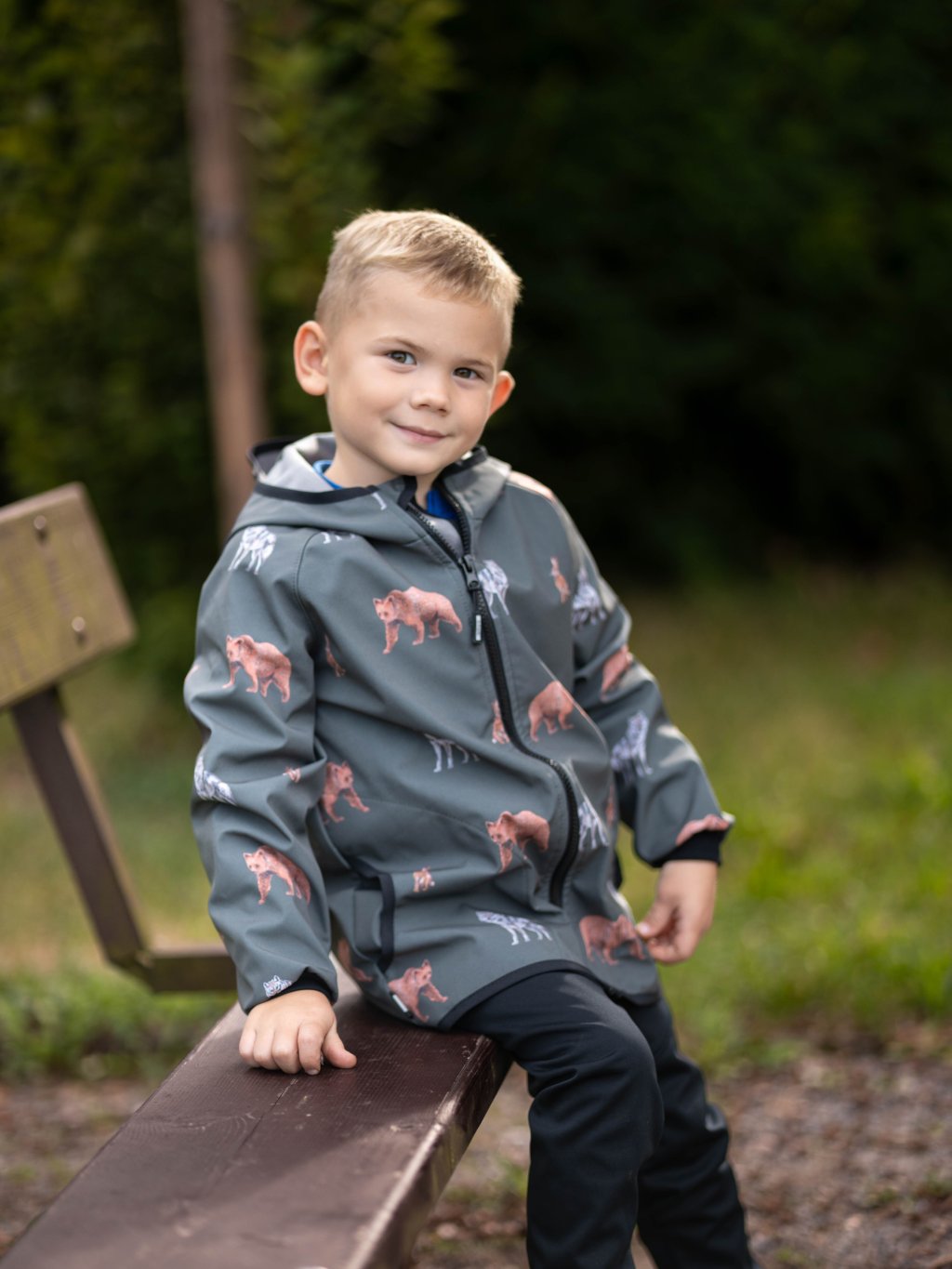 Softshell-Jacke mit Fleece für Kinder Basic, Khaki, Waldtiere