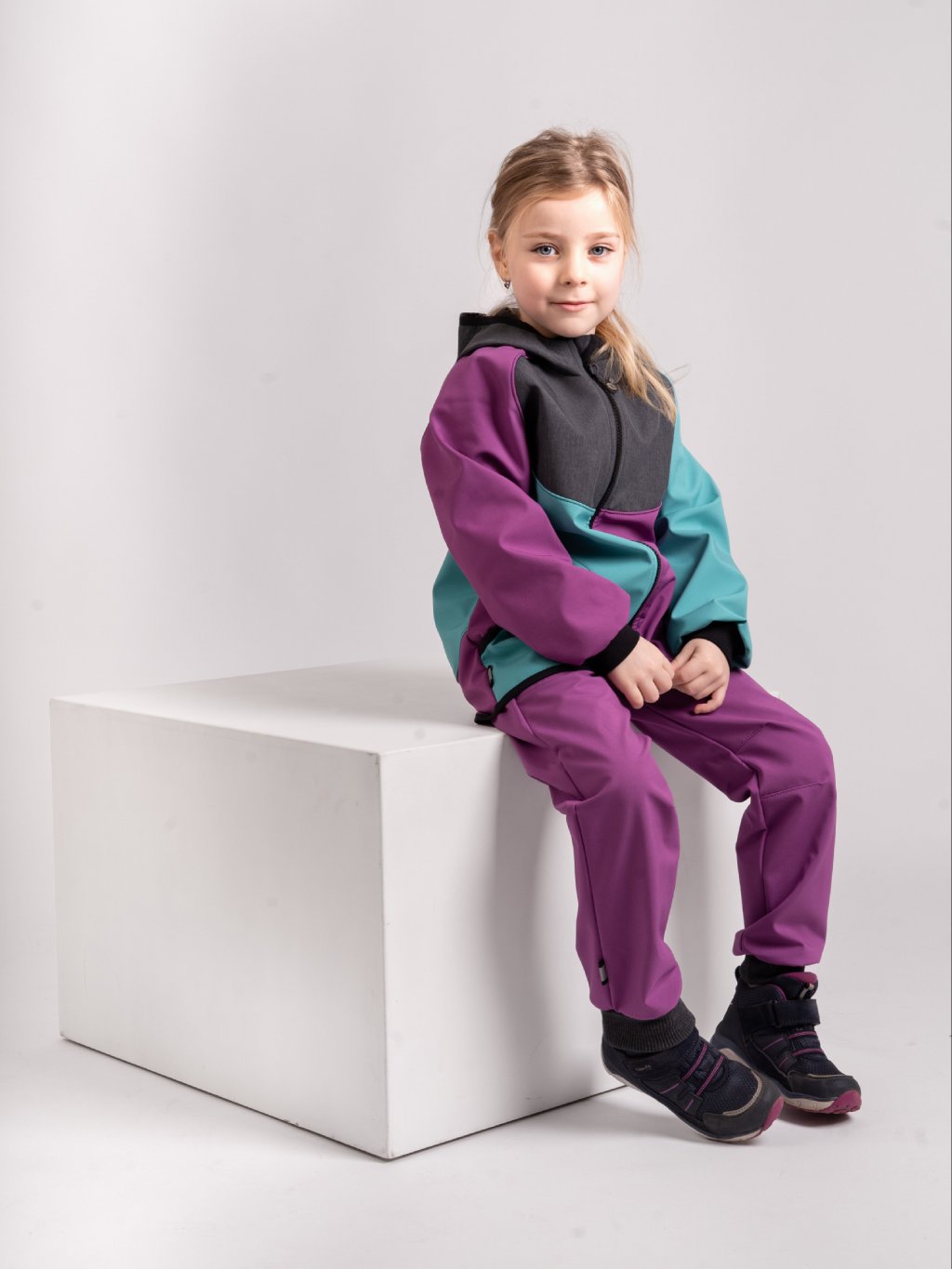 Softshell-Jacke mit Fleece für Kinder Basic, Multicolor Brombeere