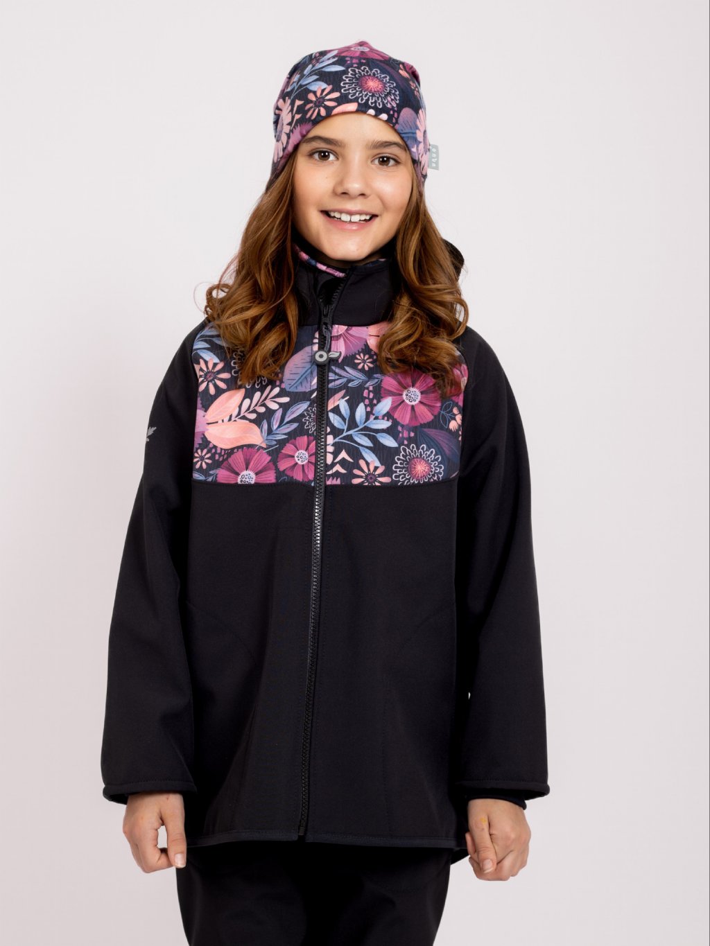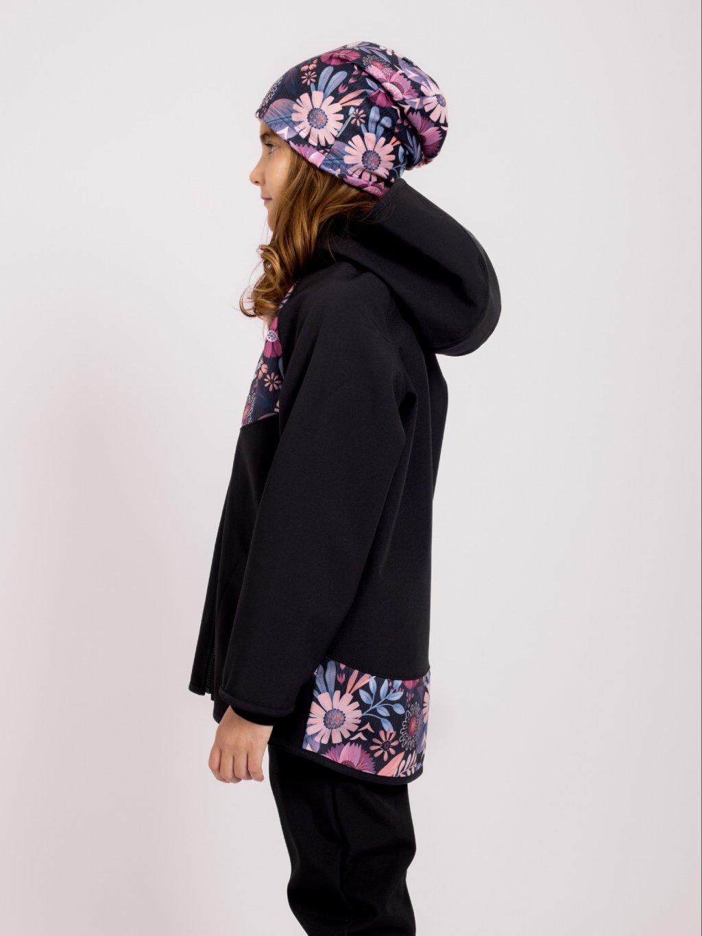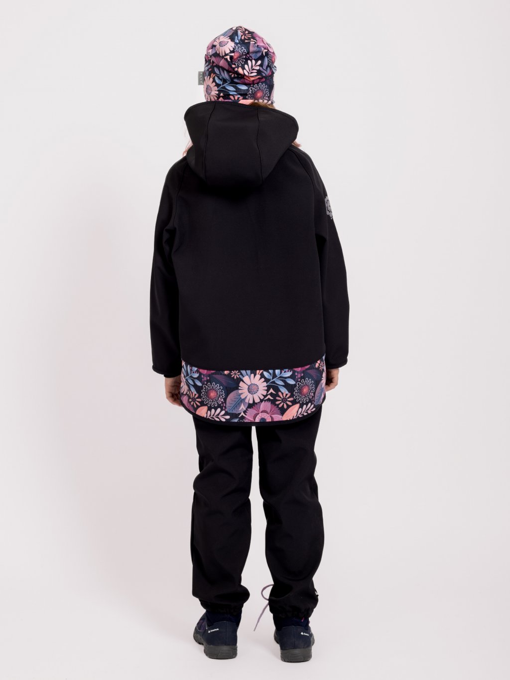 Softshell-Jacke mit Fleece für Kinder Basic, Schwarz, Magische Blumen
