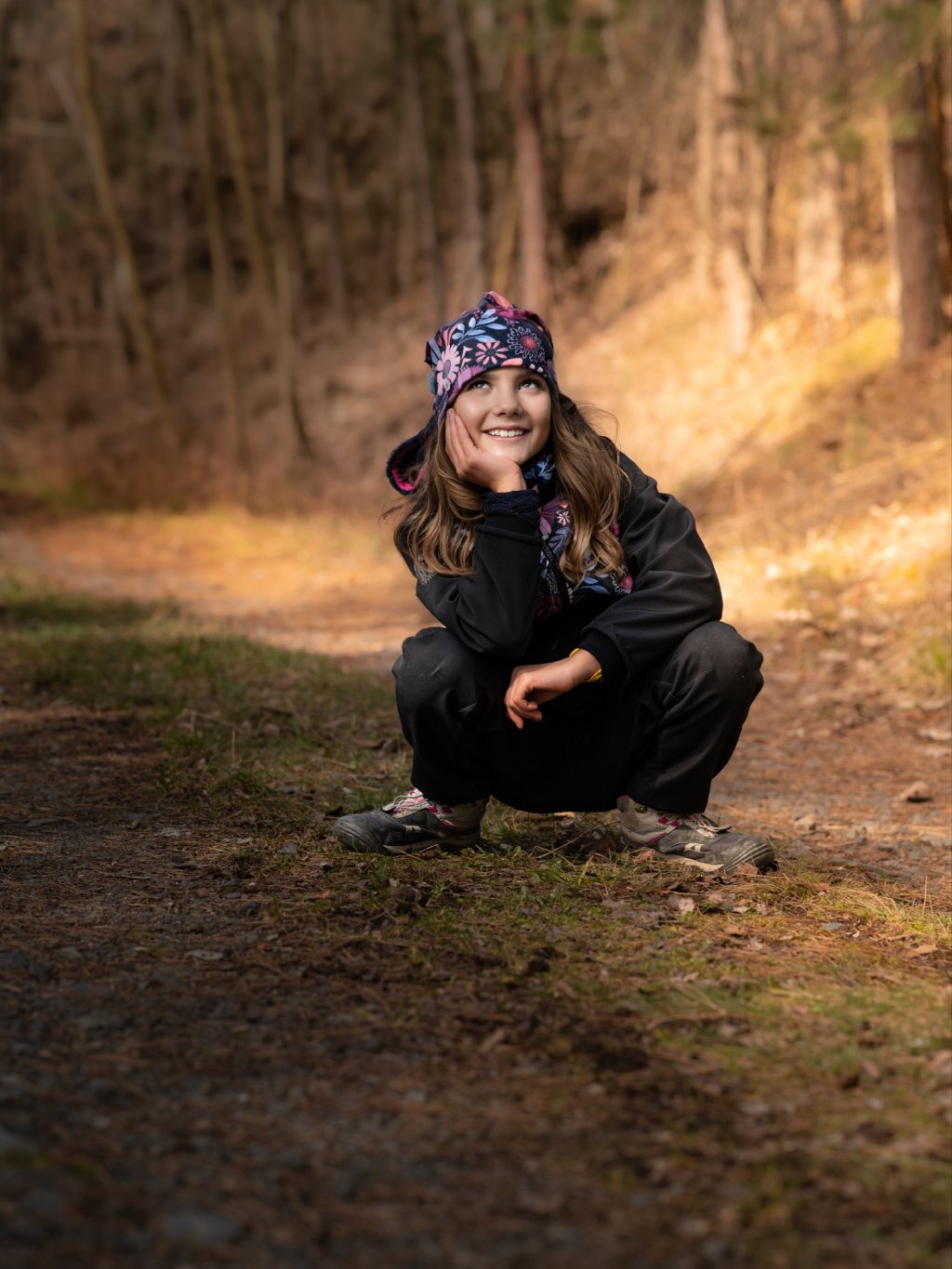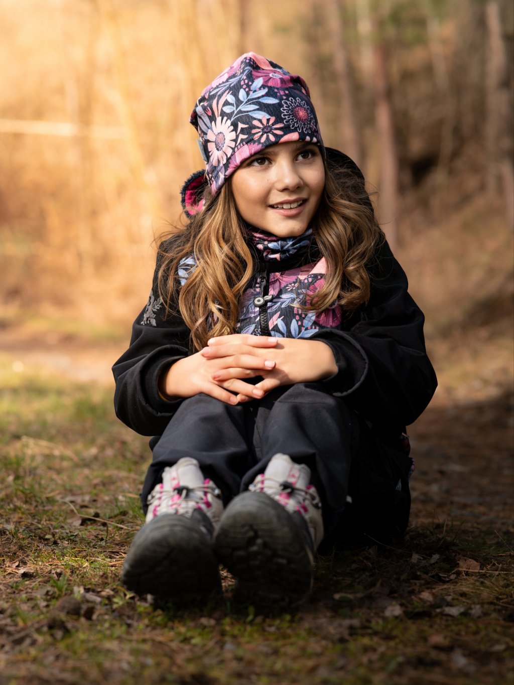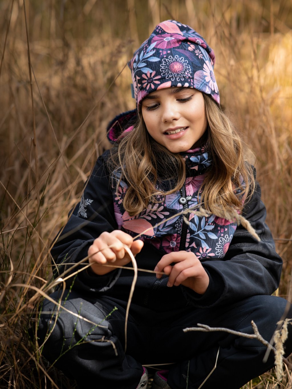 Softshell-Jacke mit Fleece für Kinder Basic, Schwarz, Magische Blumen
