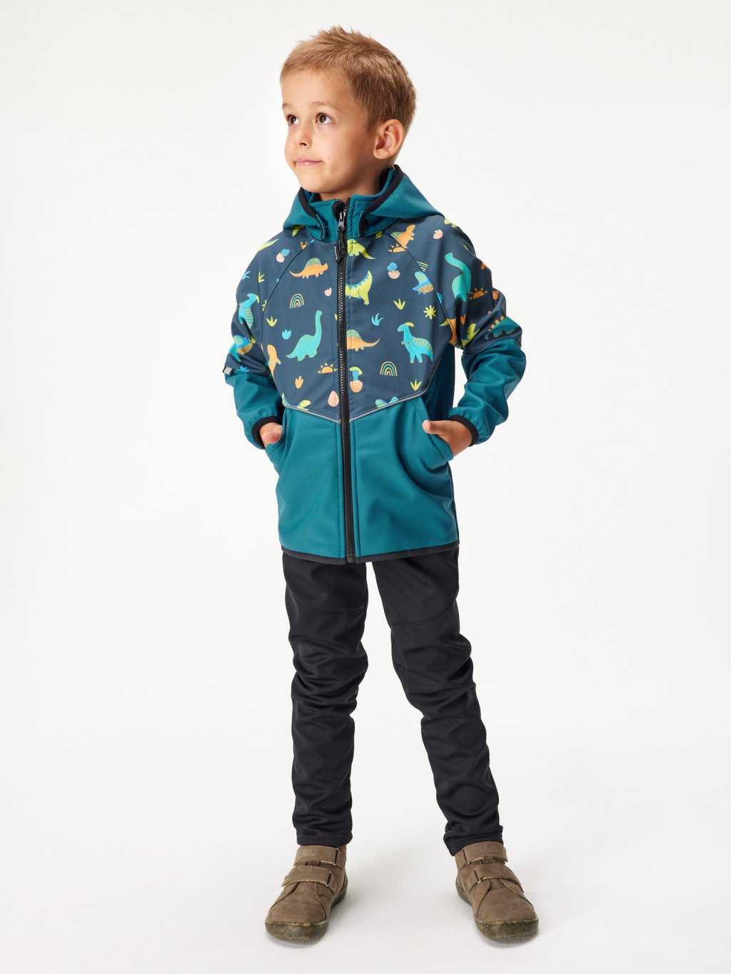 Softshell-Jacke mit Fleece für Kinder Slim, Kobalt, Dinosaurier