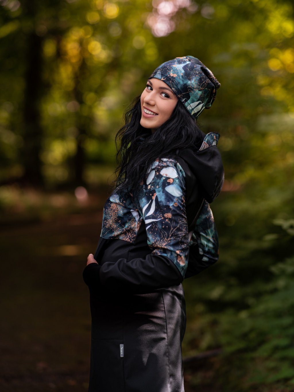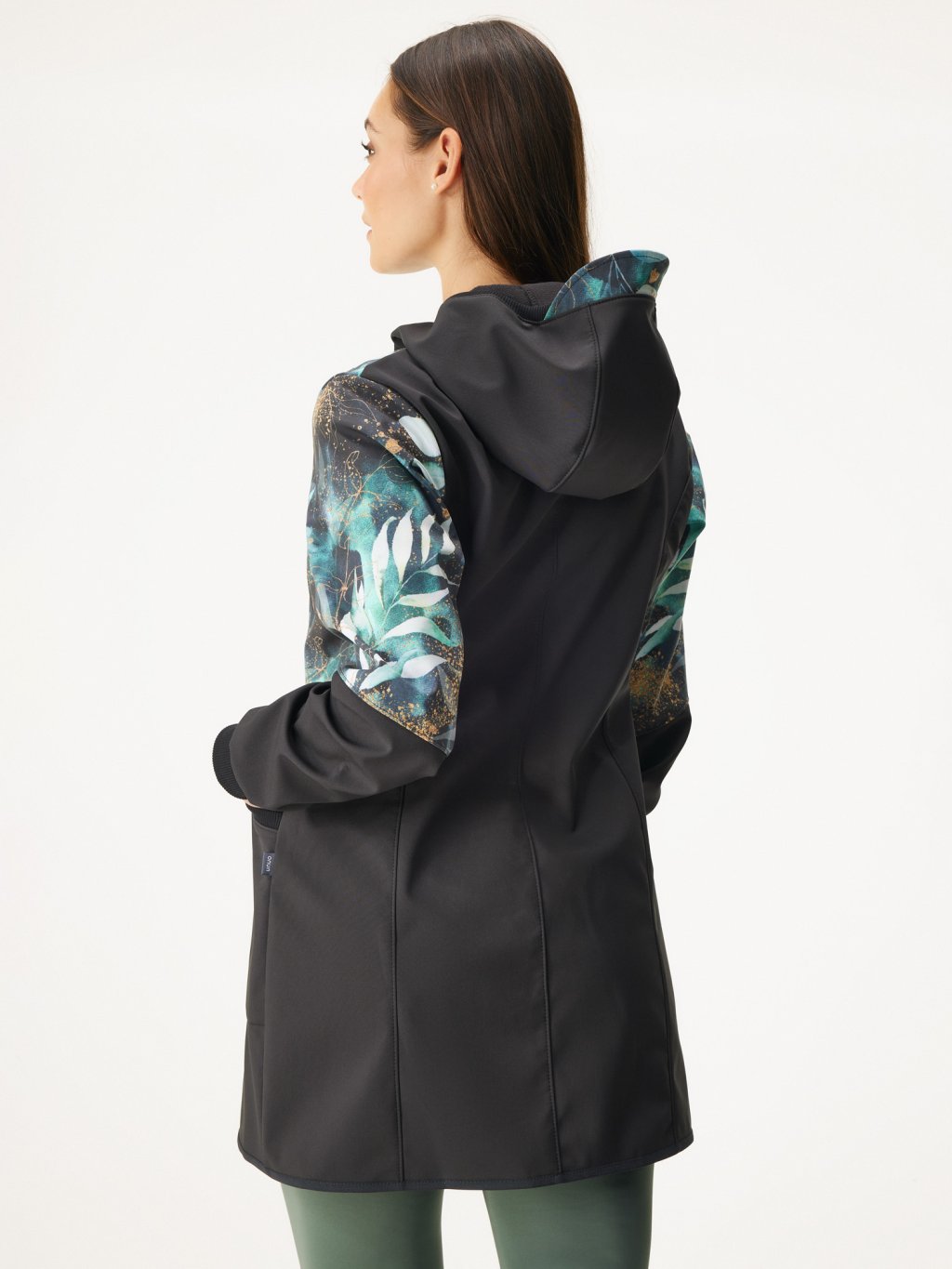 Softshell-Mantel mit Fleece für Damen Street, Schwarz, Blätter und Zweige