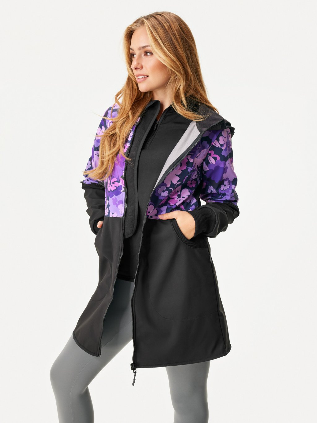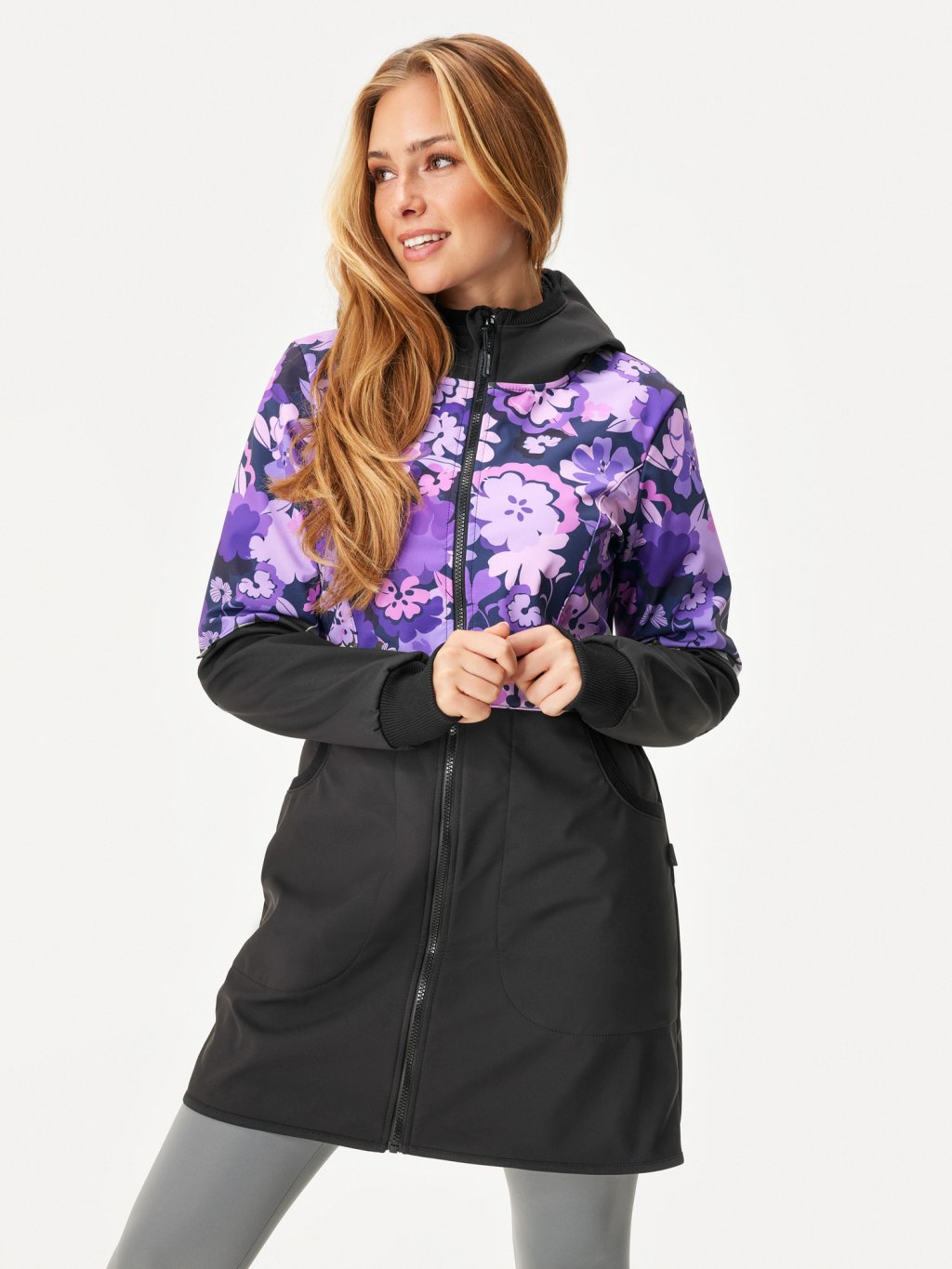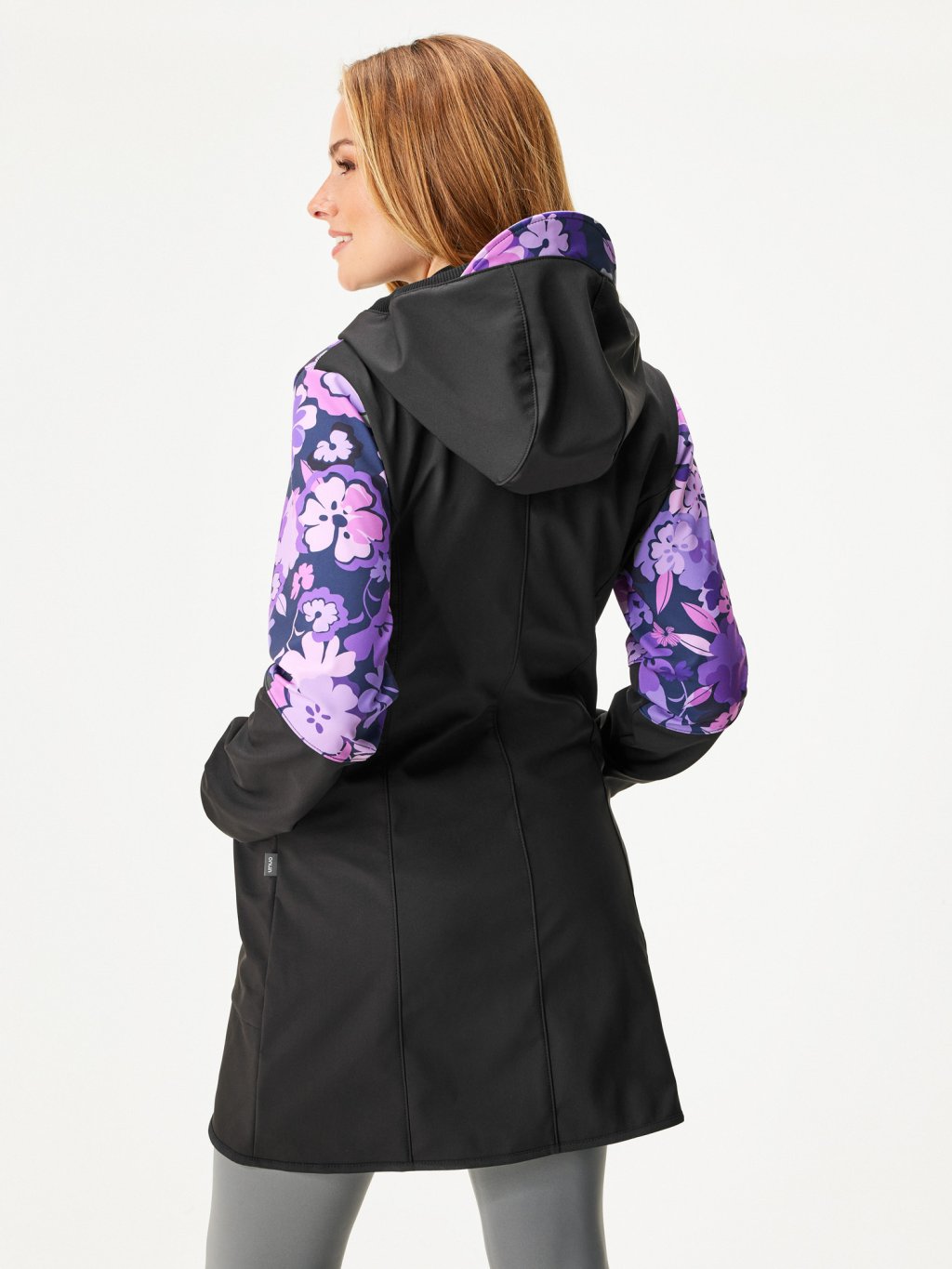 Softshell-Mantel mit Fleece für Damen Street, Schwarz, Blumen