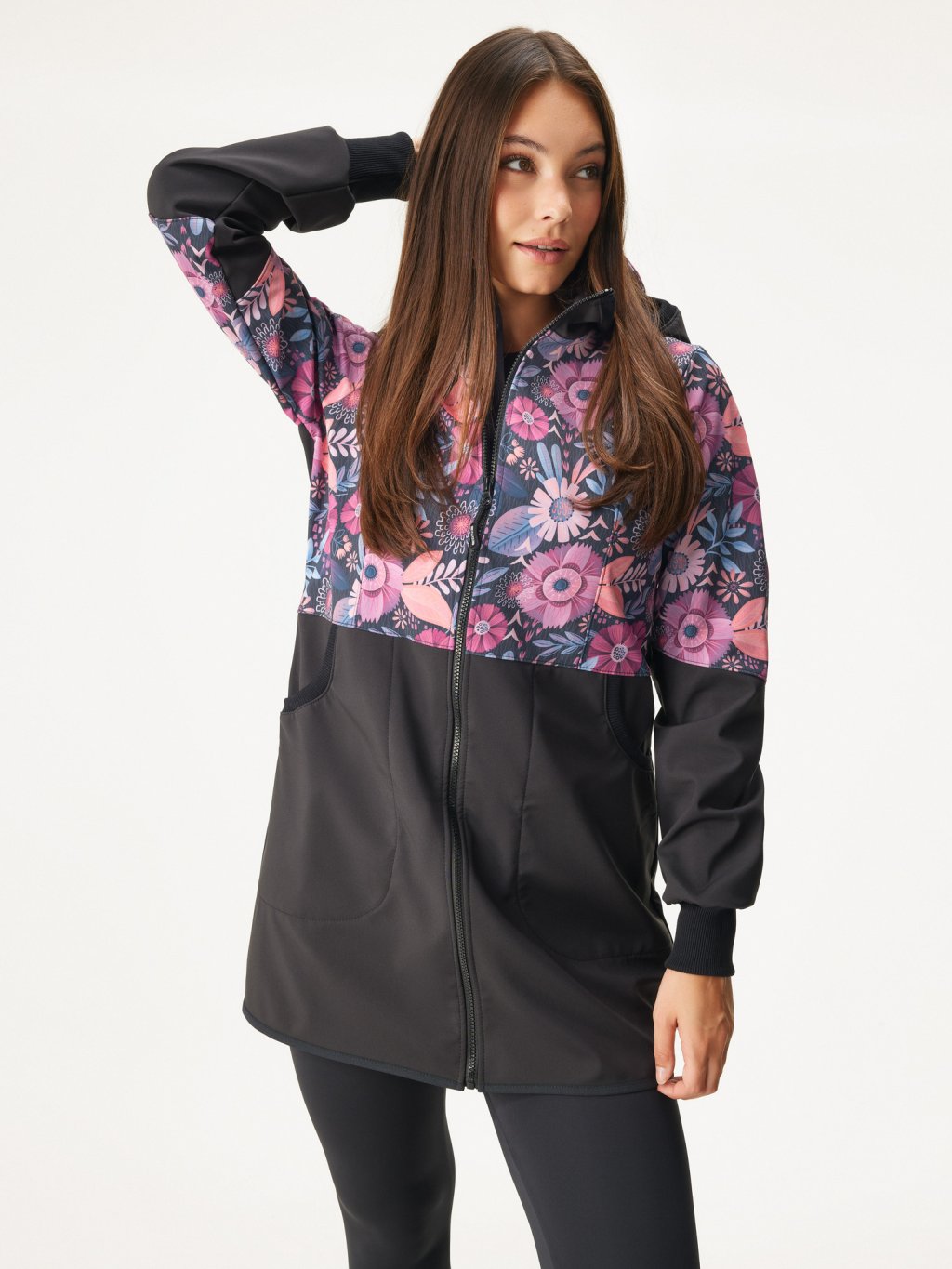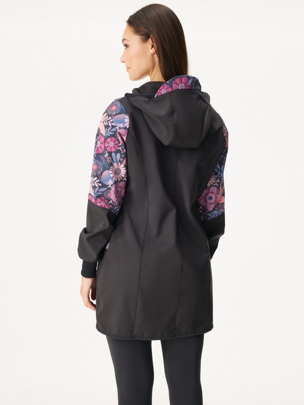 Softshell-Mantel mit Fleece für Damen Street, Schwarz, Magische Blumen