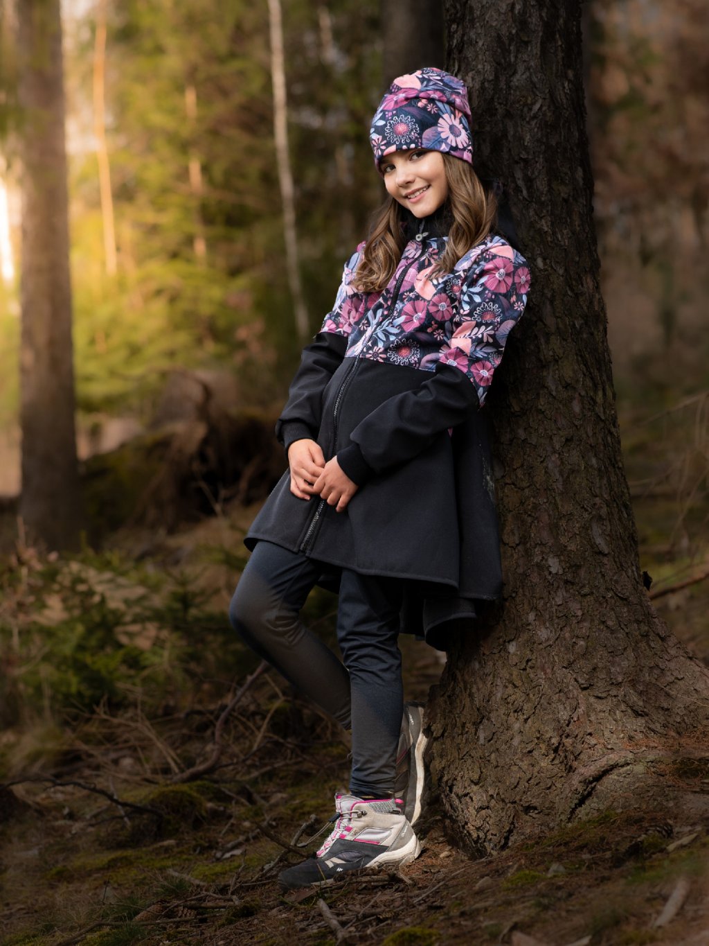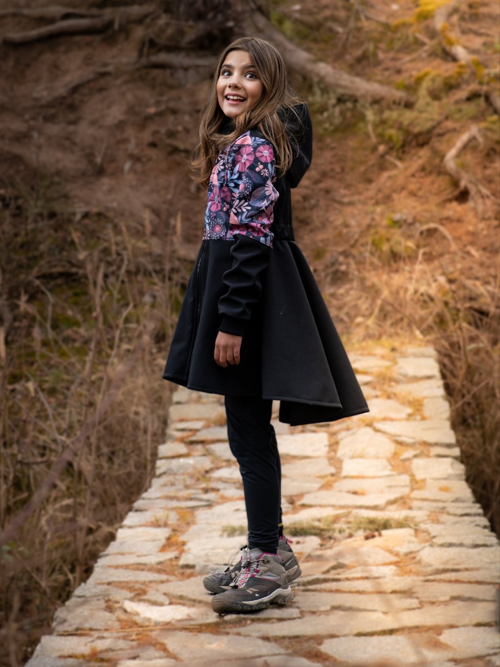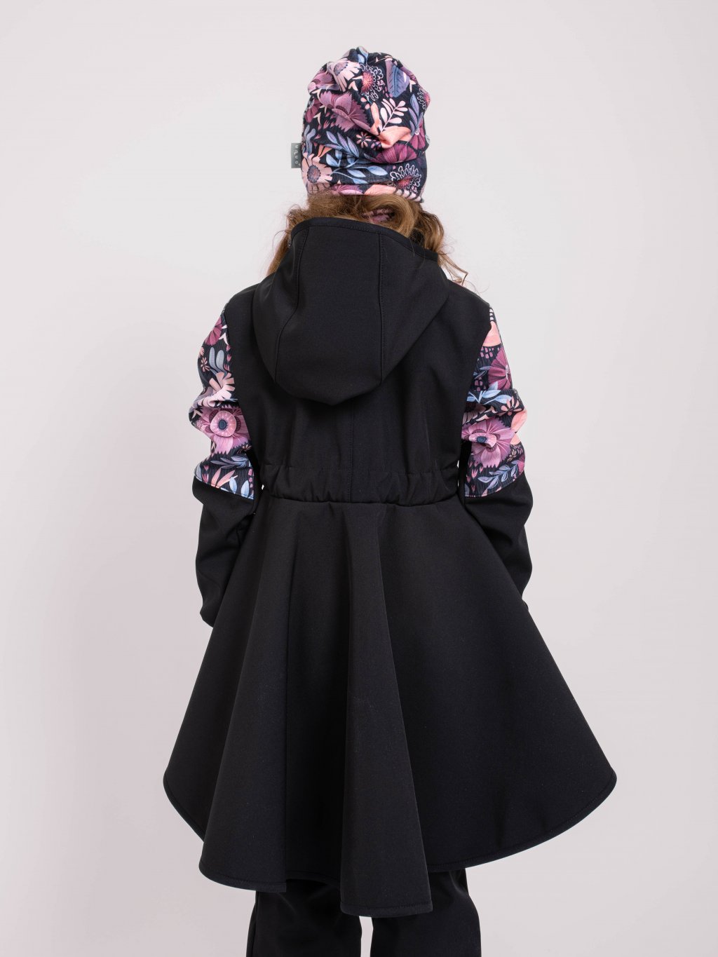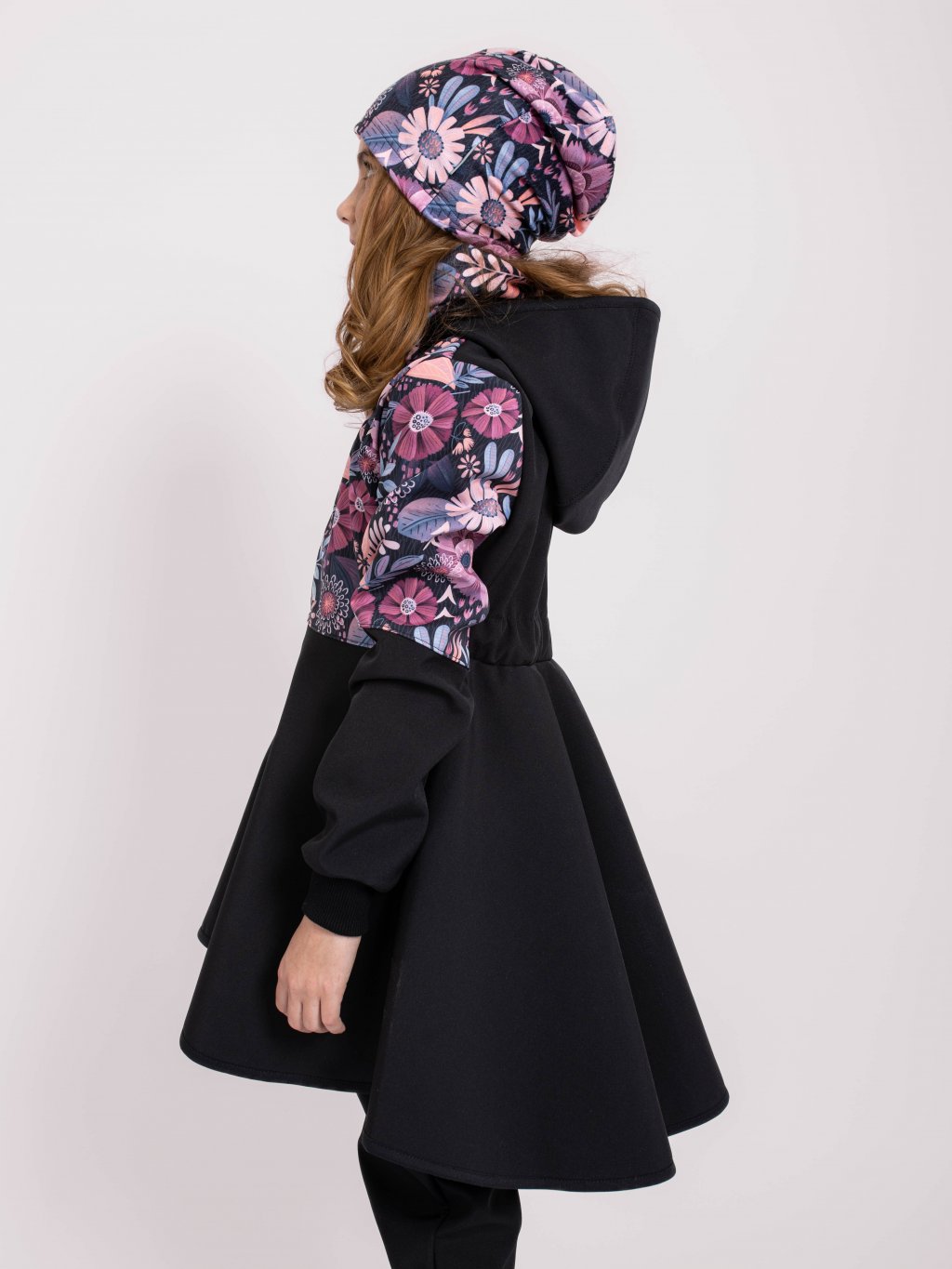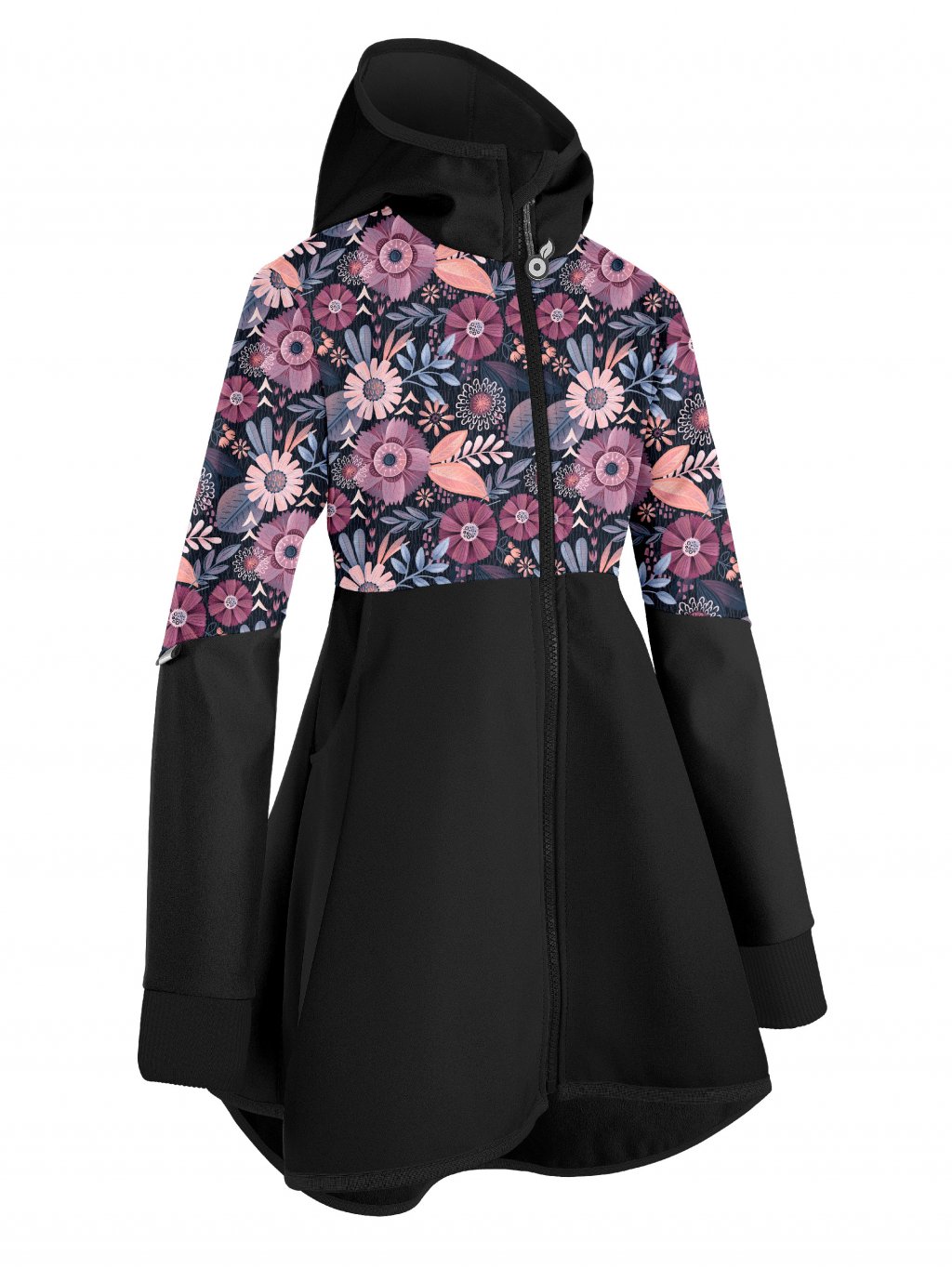 Softshell-Mantel mit Fleece für Mädchen Romantico, Schwarz, Magische Blumen