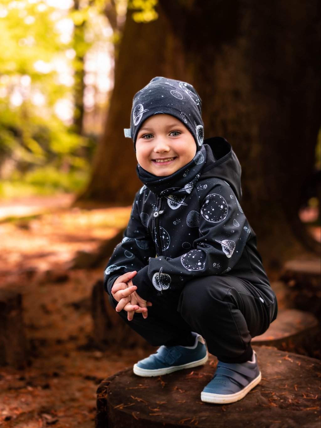 Softshell-Overall mit Fleece für Kleinkinder Mini, Schwarz, Planeten
