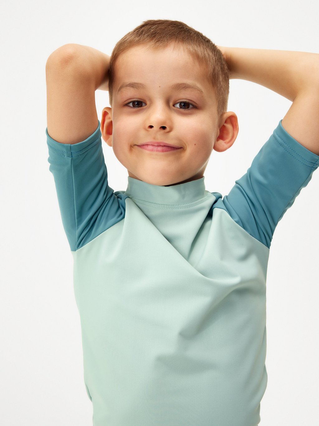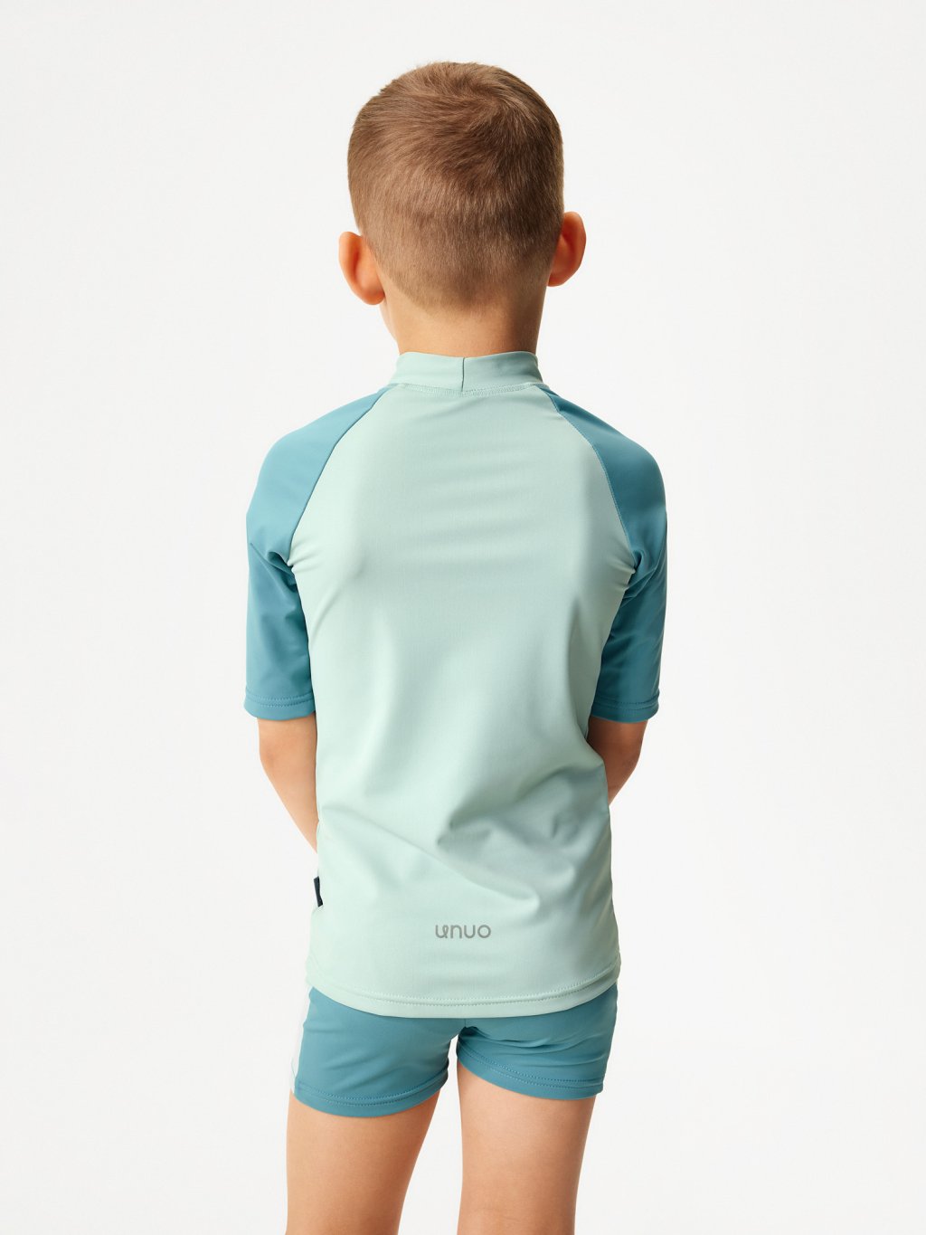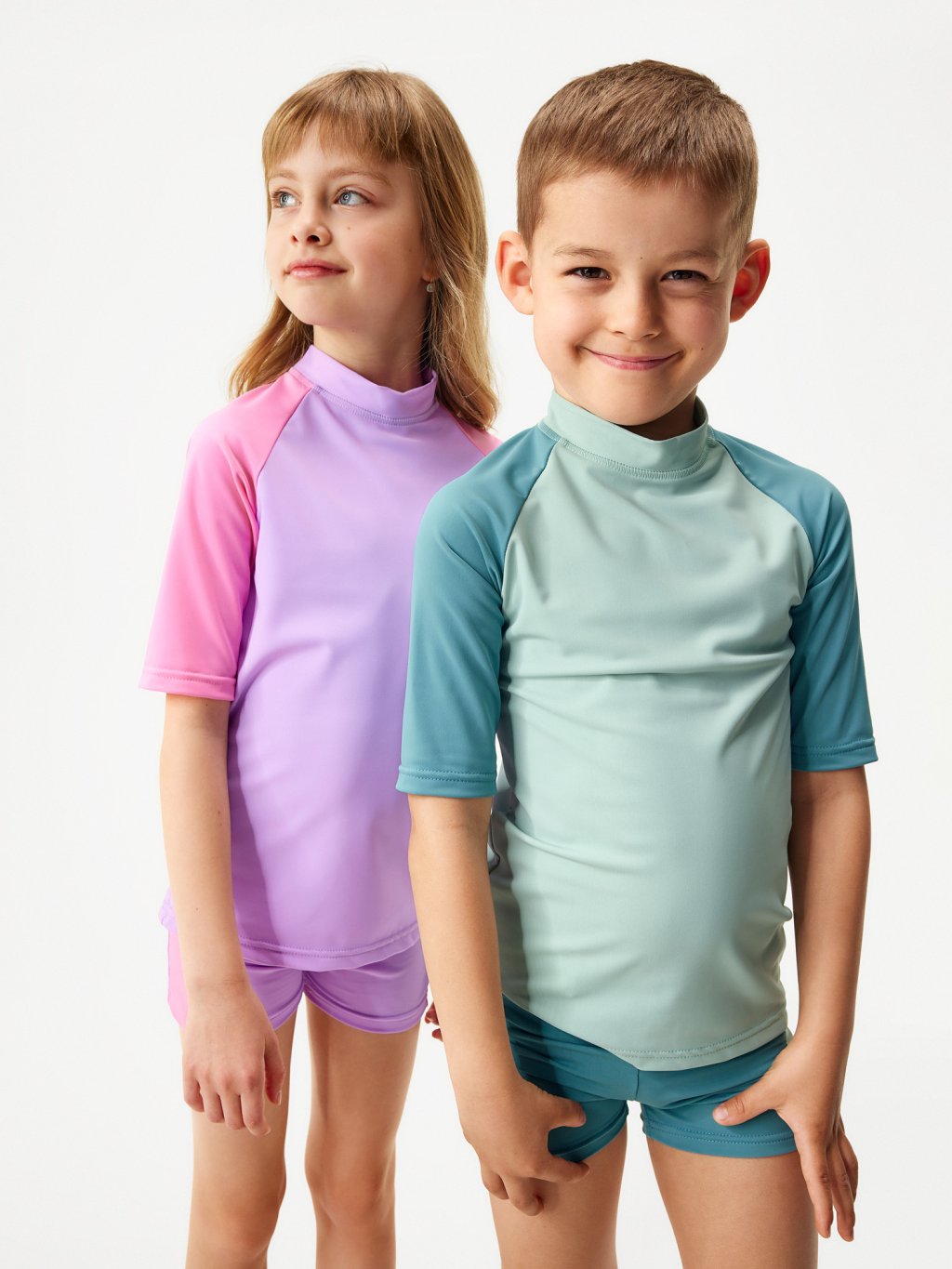 Die Kollektion ist aus hochwertigem italienischem Flockgewebe mit UV-Schutz 50+ gefertigt. Recyceltes Polyamid mit OEKO-TEX®-Zertifizierung sorgt dafür, dass die Kleidung umweltfreundlich und sicher für die Haut der Kinder ist. Darüber hinaus ist dieses Material schnelltrocknend, sehr angenehm im Griff und sorgt für maximalen Tragekomfort. Dank einer speziellen Technologie bei der Herstellung des Materials ist der UV-Schutz dauerhaft und wäscht sich auch nach mehreren Waschgängen nicht aus.
