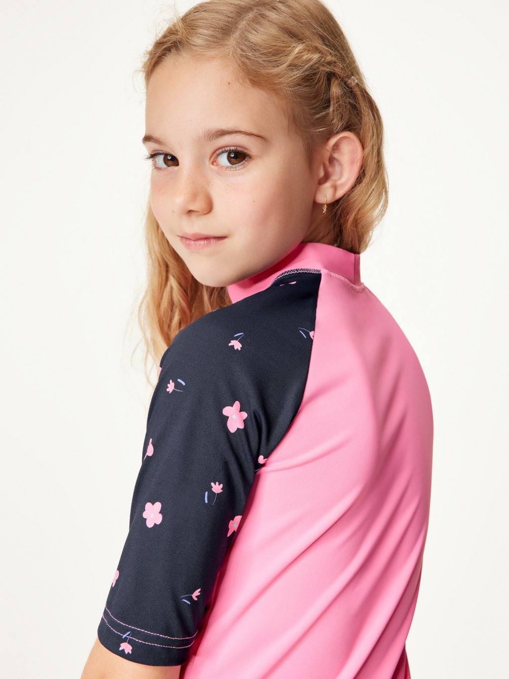 T-Shirt mit UV-Schutz 50+ für Kinder, Rosa, Blumen