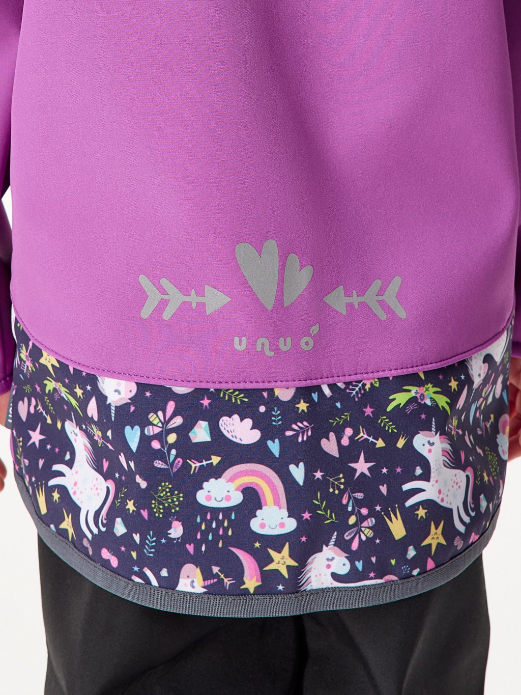 Ungefütterte Softshell-Jacke für Kinder Basic, Brombeere, Einhörner