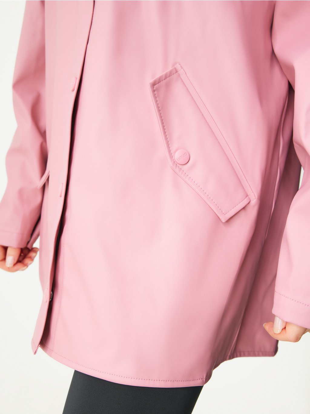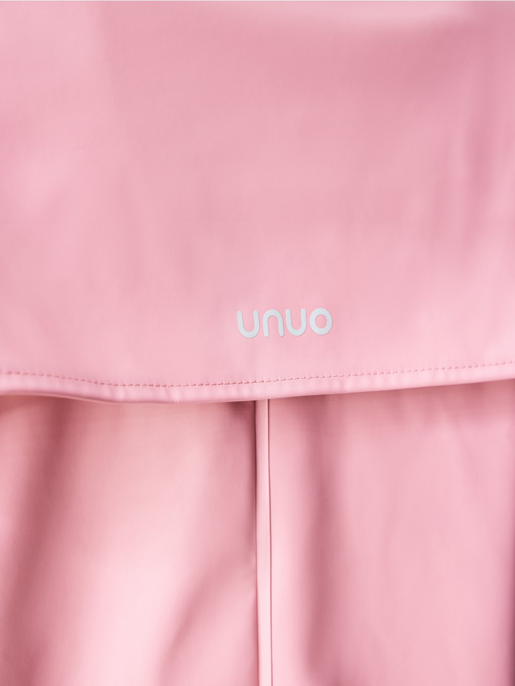 Der modische und funktionelle wasserdichte Damenmantel schützt Sie bei jedem Wetter vor Regen und Wind. Das strapazierfähige Material mit versiegelten Nähten lässt zuverlässig keinen Tropfen Wasser durch, während die praktische Kapuze mit Visier Ihr Gesicht vor Regen schützt. Die Ärmel lassen sich mit einem Druckknopf leicht verstellen, um eine bessere Passform zu gewährleisten und Feuchtigkeit abzuhalten. Der Mantel wird mit Druckknöpfen mit Unuo-Logo geschlossen, die das Anziehen erleichtern und dem Mantel einen einzigartigen Look verleihen. Außerdem gibt es praktische Taschen, in denen Sie Ihre wichtigsten Utensilien sicher verstauen können. Die perfekte Wahl für Frauen, die einen leichten, aber zuverlässigen Schutz für regnerische Tage suchen. Die wasserdichte Kollektion wird in der Tschechischen Republik entworfen und von einer ausländischen Näherei genäht.