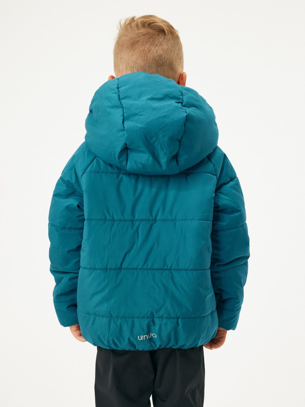 Praktisch und verspielt zugleich! Unsere Wendejacke bietet zwei Looks in einem Stück. Schlicht und einfarbig oder mit dem auffälligen unuo-Muster? Einfach nach Lust und Laune wenden. Auf beiden Seiten befinden sich Taschen mit Klettverschluss, in denen Kinder alles Nötige verstauen können. Dank der elastischen Bänder in Taille, Ärmeln und Kapuze sitzt die Jacke perfekt und schützt vor Wind und Kälte. Reflektierende Elemente am Rücken, Ärmel und Reißverschluss-Zipper erhöhen die Sichtbarkeit und Sicherheit beim Spielen draußen oder auf dem Weg zur Schule oder in den Kindergarten. Die Jacke wurde in der Tschechischen Republik entworfen und in einer ausländischen Näherei gefertigt.